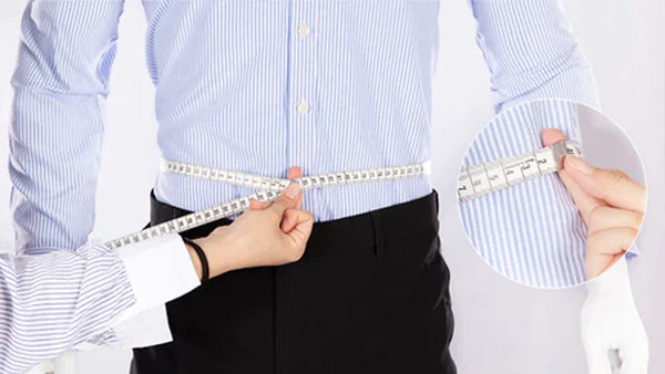 Measure around the stomach, in line with the navel. Breathe normally. Note that this measurement should be taken with a finger inside the measuring tape.