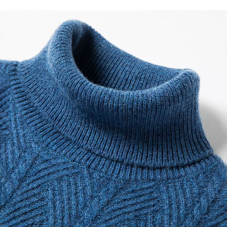 Experience warmth and comfort in a timeless and versatile garment. Our Men's Wool Cashmere Soft Turtleneck Sweater is the perfect addition to your wardrobe.